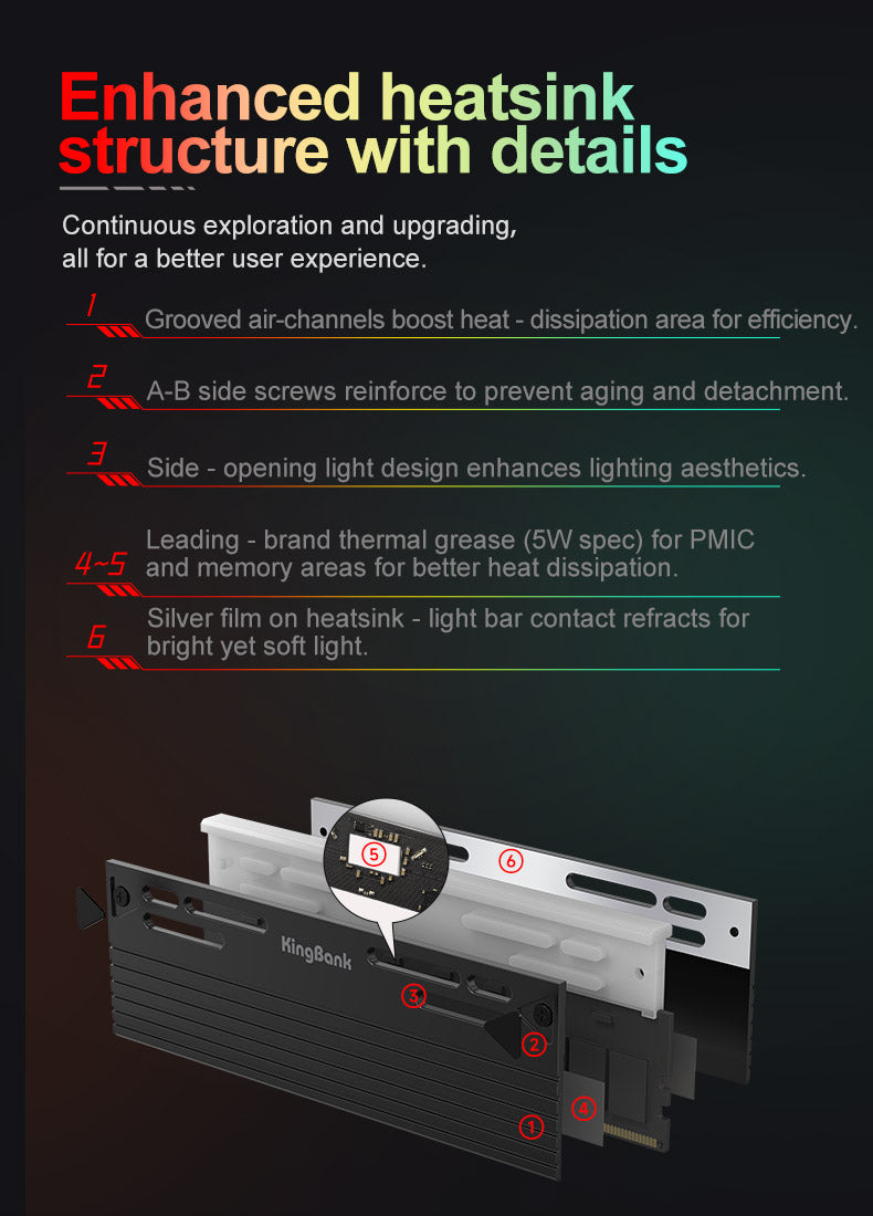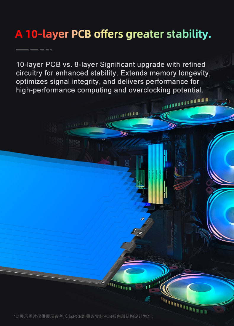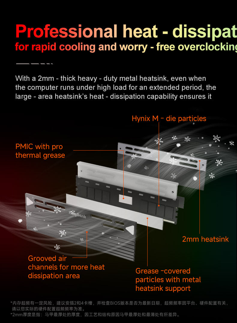 - Enhanced Heat Dissipation: The memory module incorporates an alloy heat sink with a remarkable 2mm thickness on one side. This design enables efficient heat conduction, effectively improving the memory's heat dissipation efficiency for optimal performance.